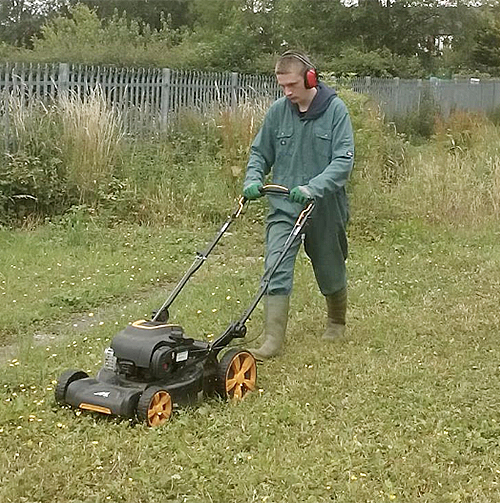 In the autumn there’s always lots of harvesting to do. We also have quite a bit of grass and this needs keeping short, using the petrol mower to do this is always a popular job!